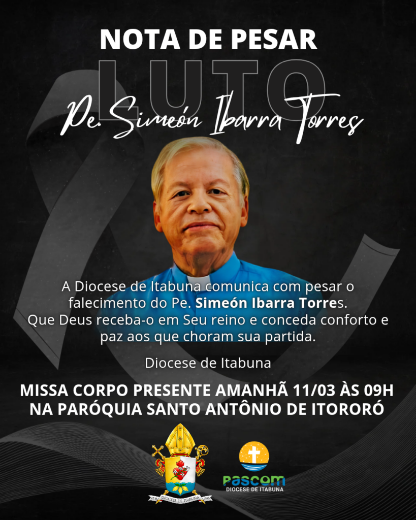 Padre Simeón Ibarra Torres faleceu deixando para a Diocese de Itabuna o exemplo de que a missão não tem fronteiras e a devoção não tem fim. Ele partiu para a casa do Pai como viveu: confiando plenamente na Misericórdia que tanto pregou.